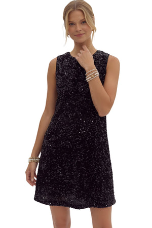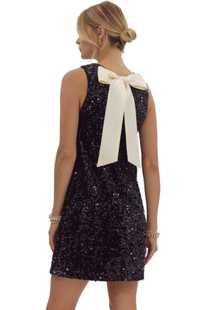 SEQUIN VELVET BLACK RIBON TIE MINI DRESS