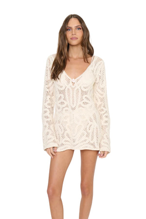 ANYWHERE MINI DRESS WHITE SAND CROCHET