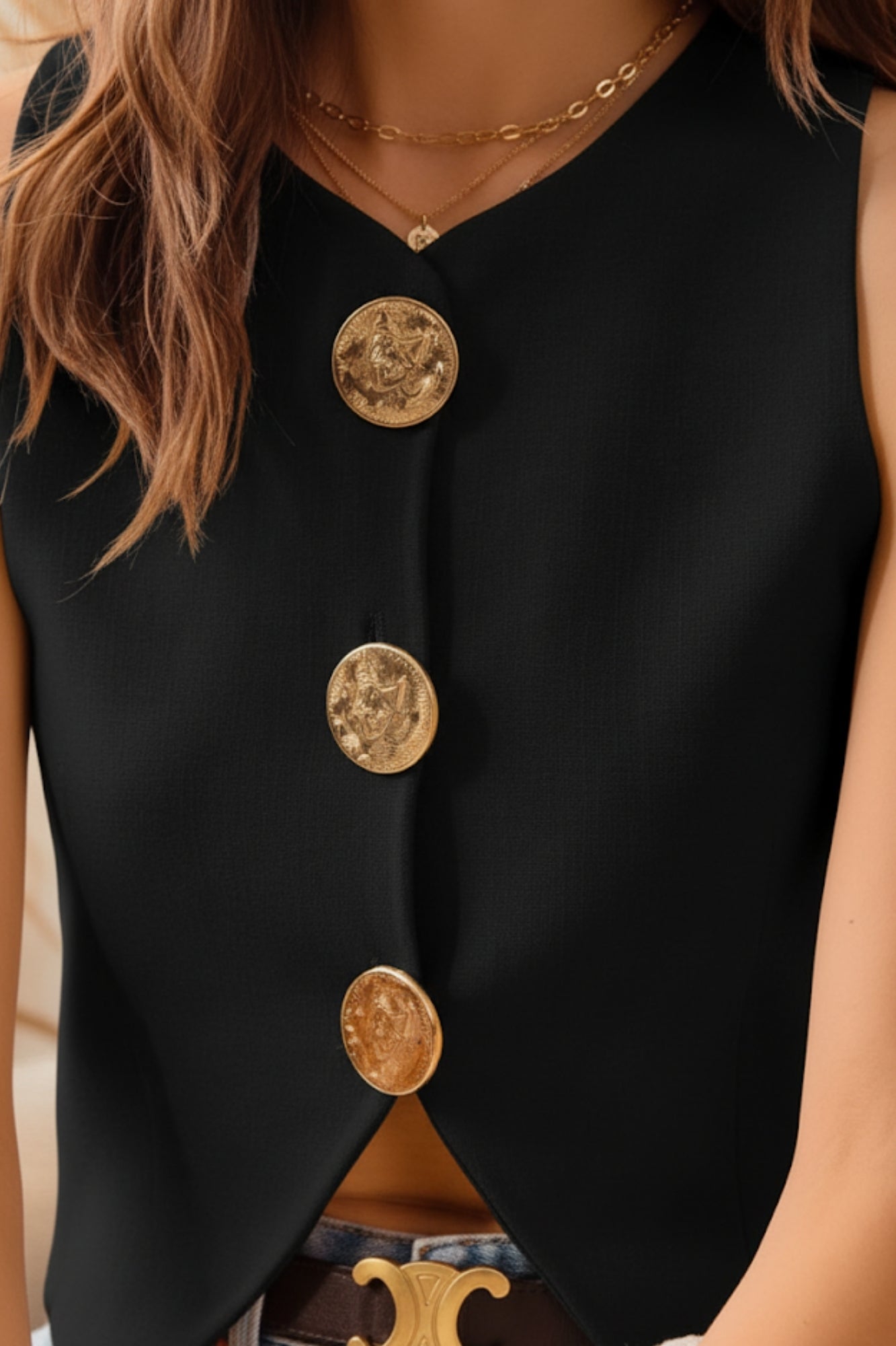 BIG METAL BLACK BUTTON FRONT LIGHT WEIGHT KNITTED VEST