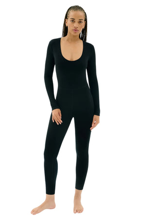 - A body-hugging one piece jumpsuit in super soft Airweight fabric, updated with long sleeves. Great for any workout or for casual wear - perfect for the colder months!