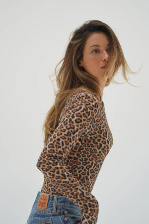 DALSTON RIBBED CROPPED LEOPARD LONG SLEEVE