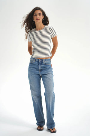 - Dillon is a fitted crew neck tee in a butter rib fabric.