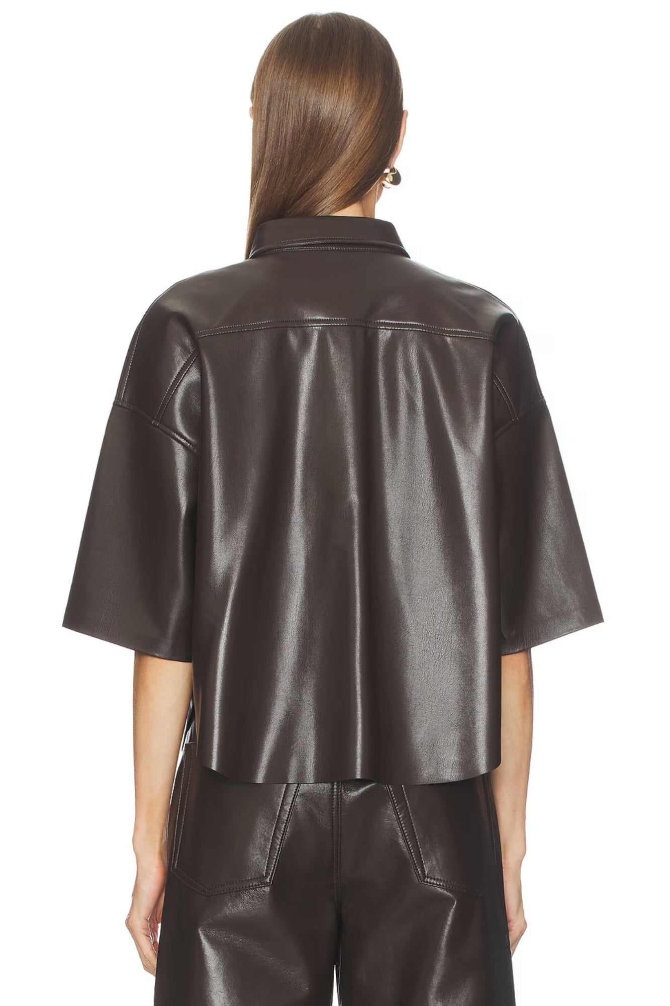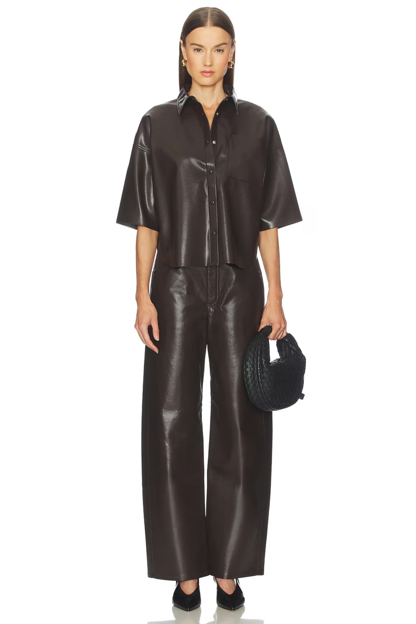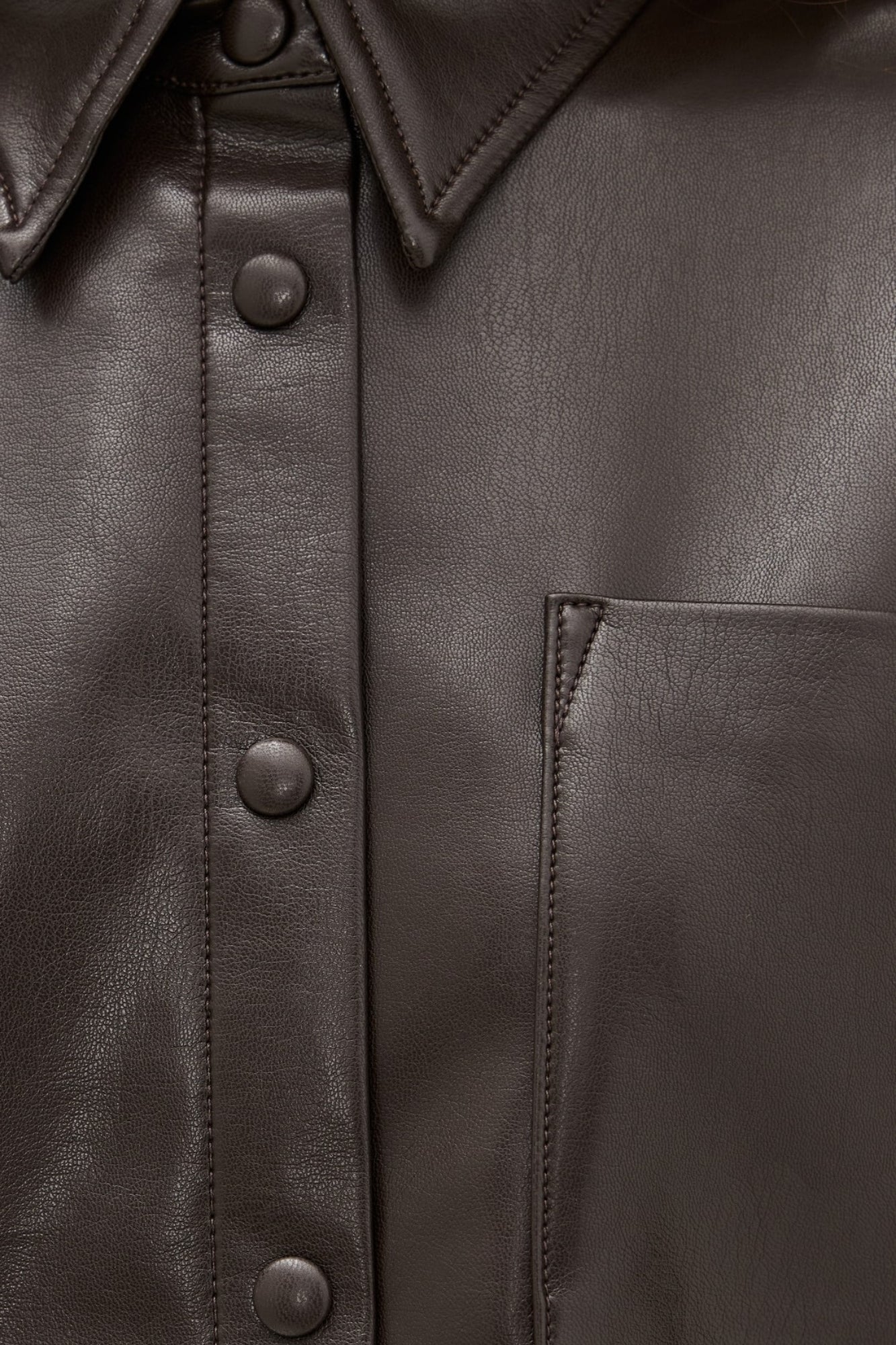 - The ‘Frances’ offers a directional take on the classic button-up, reimagined in buttery faux leather with a subtle stretch for ease