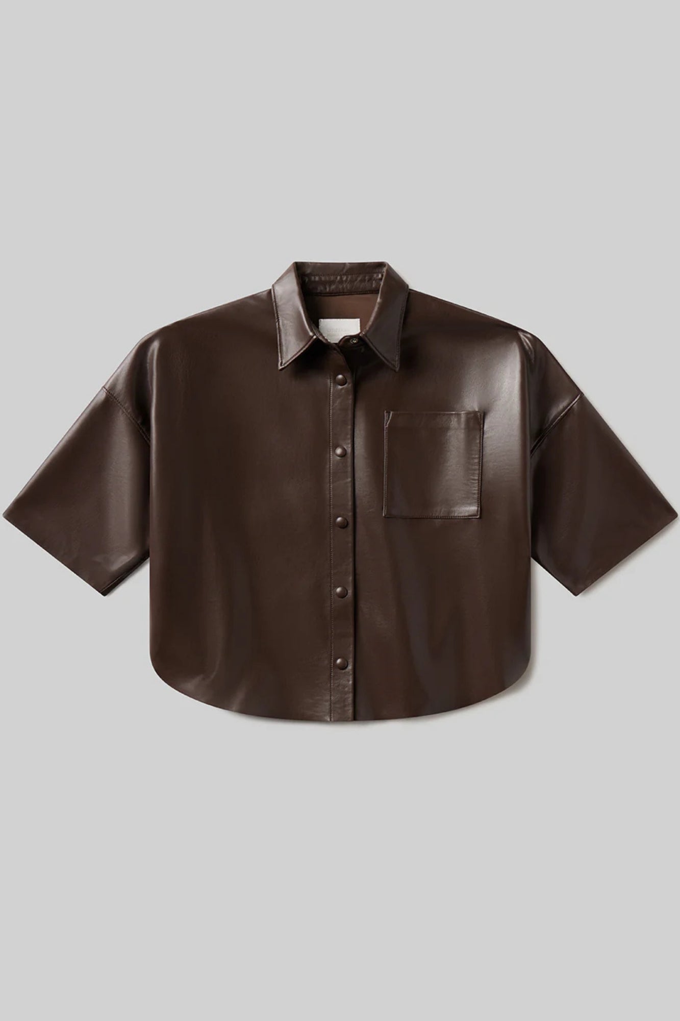 FRANCES CROPPED CAPE BUTTON UP IN LEATHER
