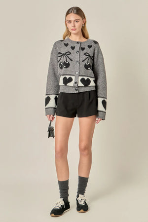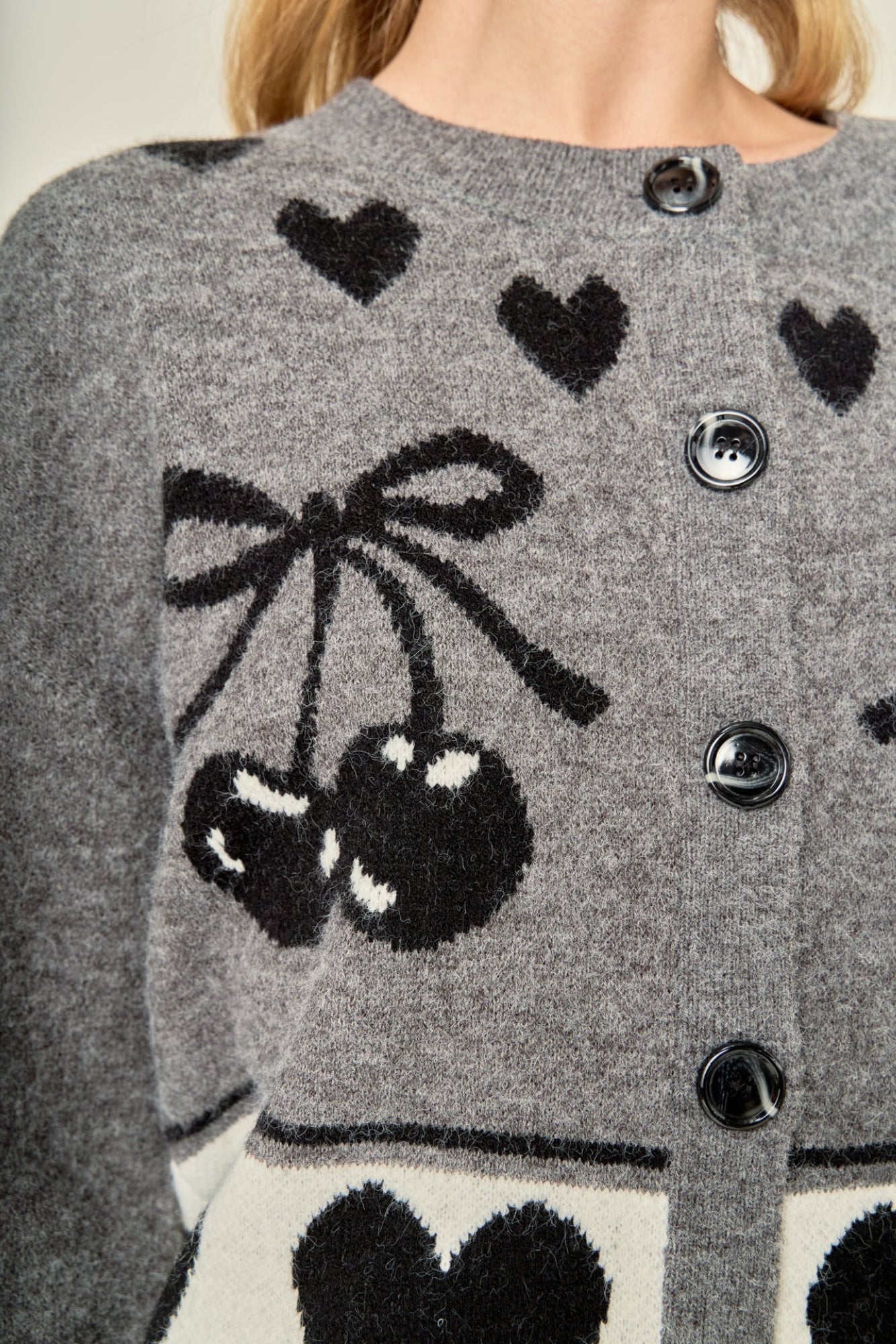 KNIT CARDIGAN WITH CHERRY HEART PATTERN
