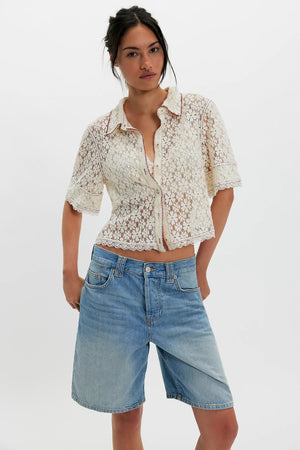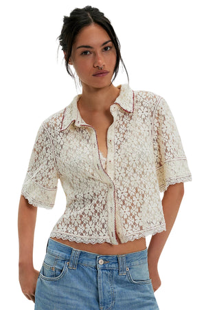MANNIE LACE BUTTON DOWN IN WHISPER WHITE