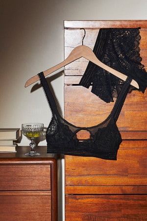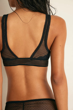 • Layers of sheer fabrications like lace and close-knit mesh make this bralette from Intimately absolutely mesmerizing.