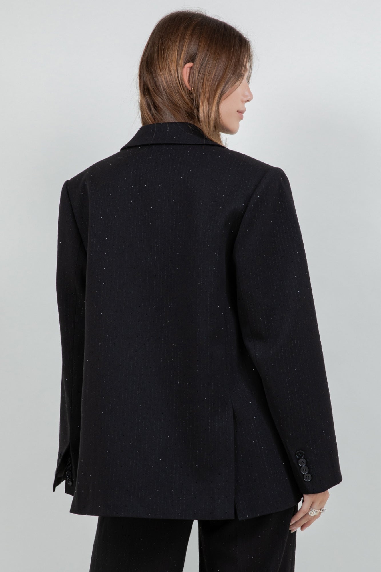 RHINESTONE EMBOSSED BLACK PINSTRIPE BLAZER