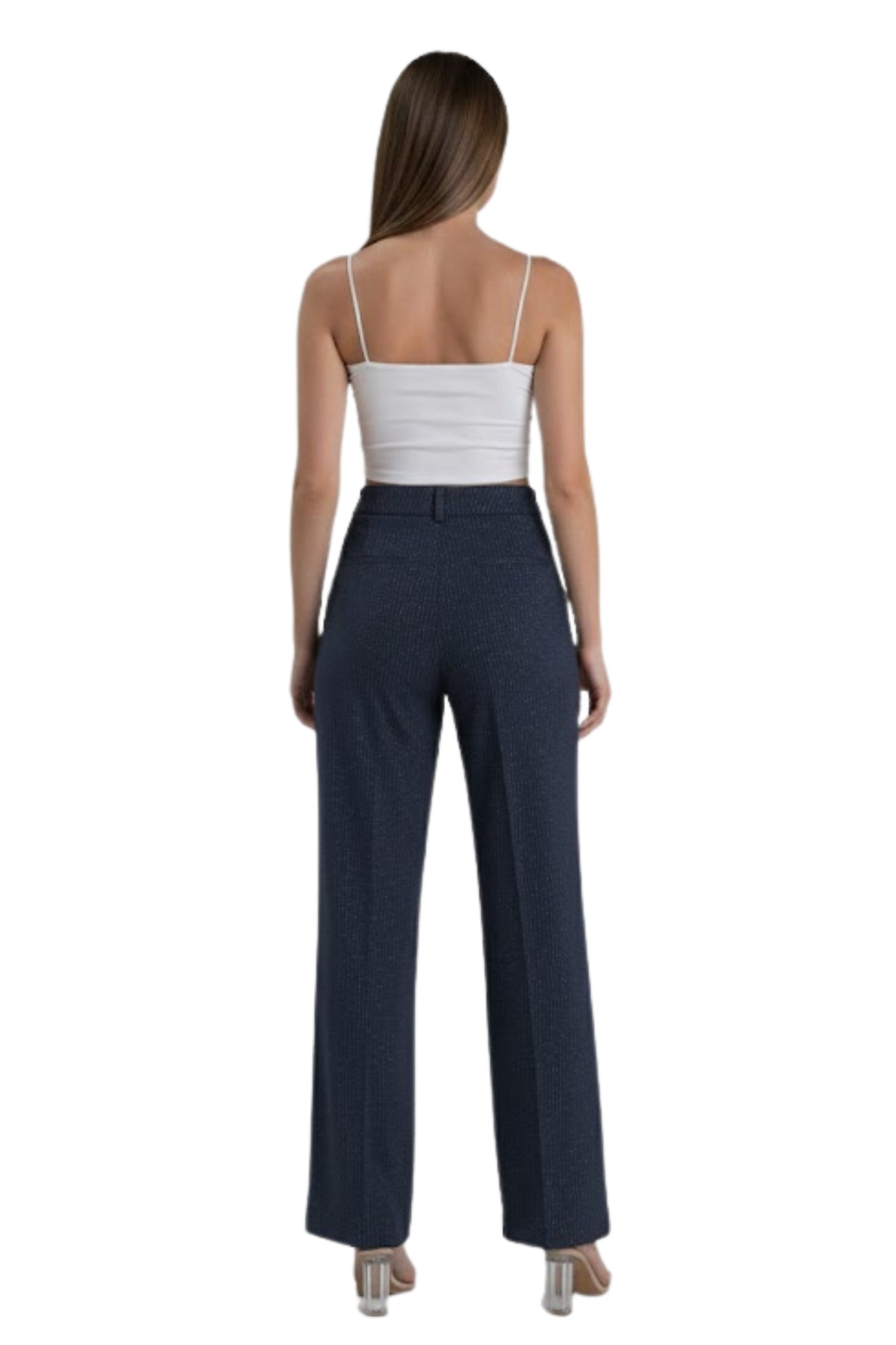 RHINESTONE EMBOSSED NAVY PINSTRIPE PANT