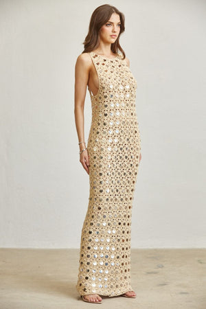 ROUND SEQUIN KNITTED GOLD MAXI DRESS