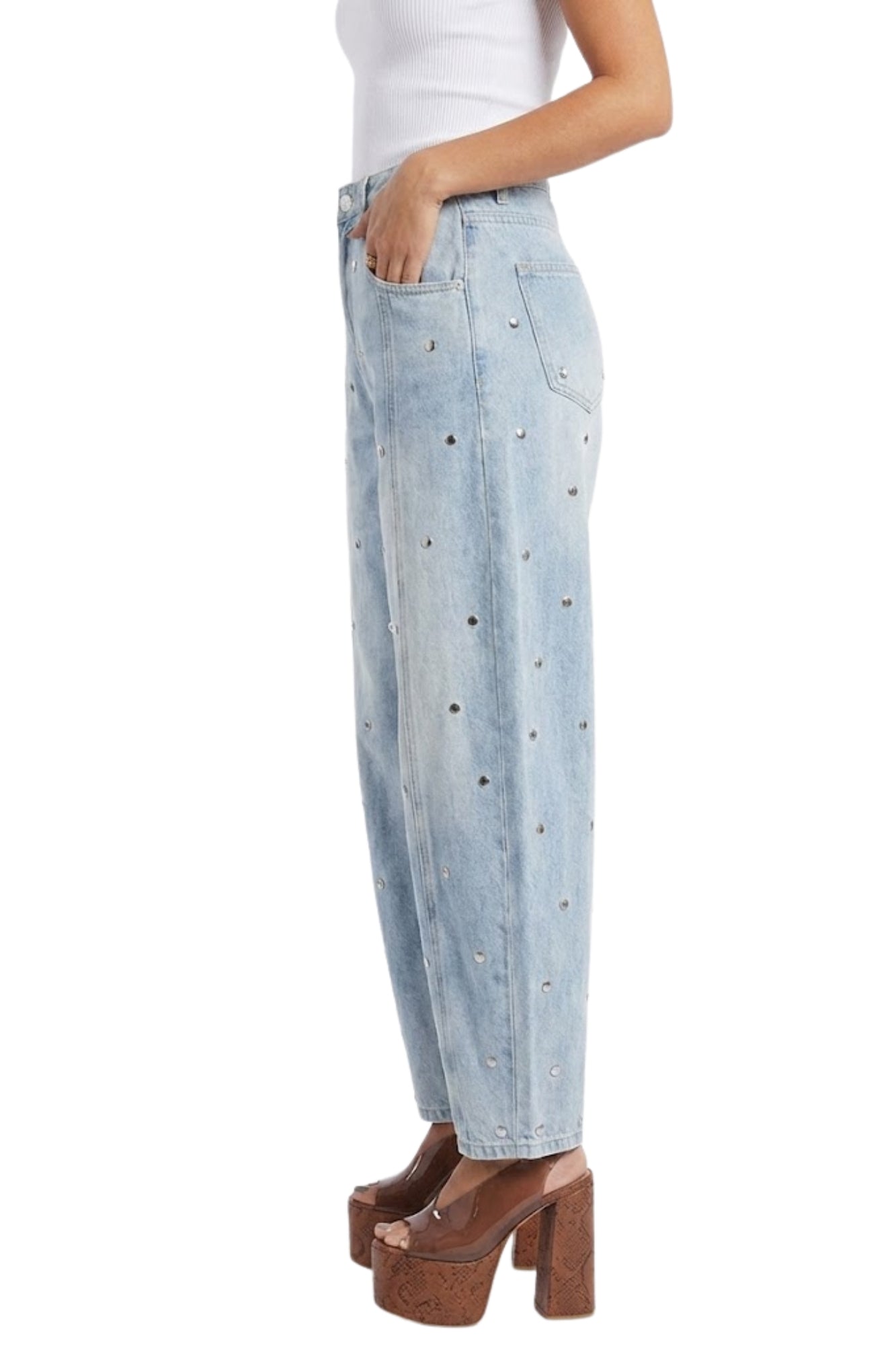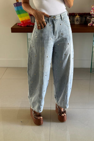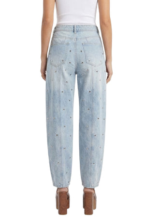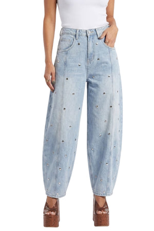 STUDDED BARREL LIGHT DENIM PANTS