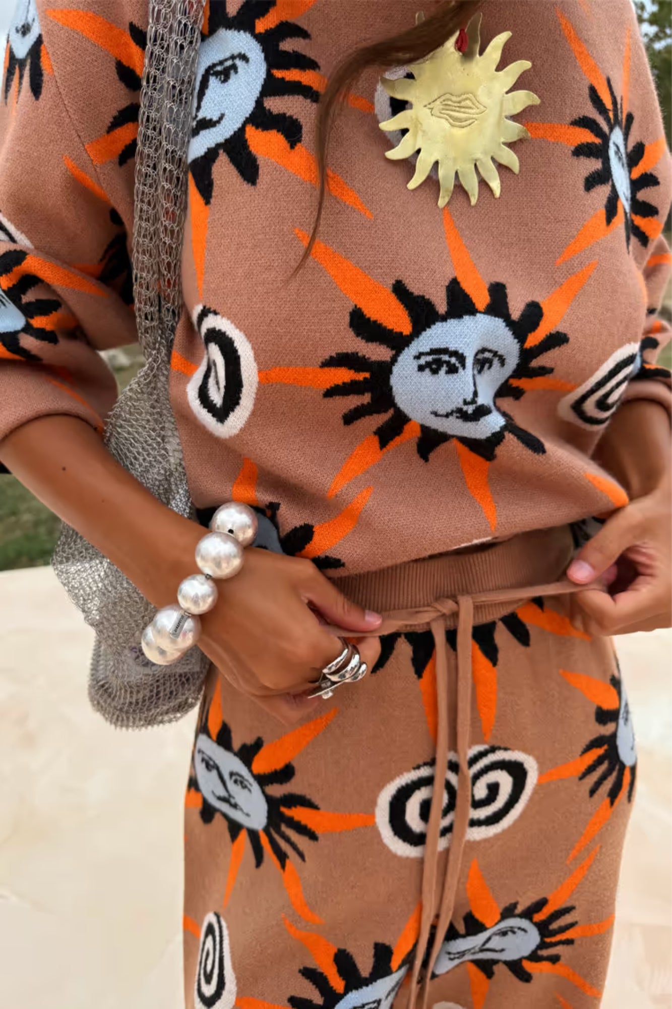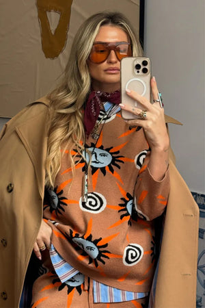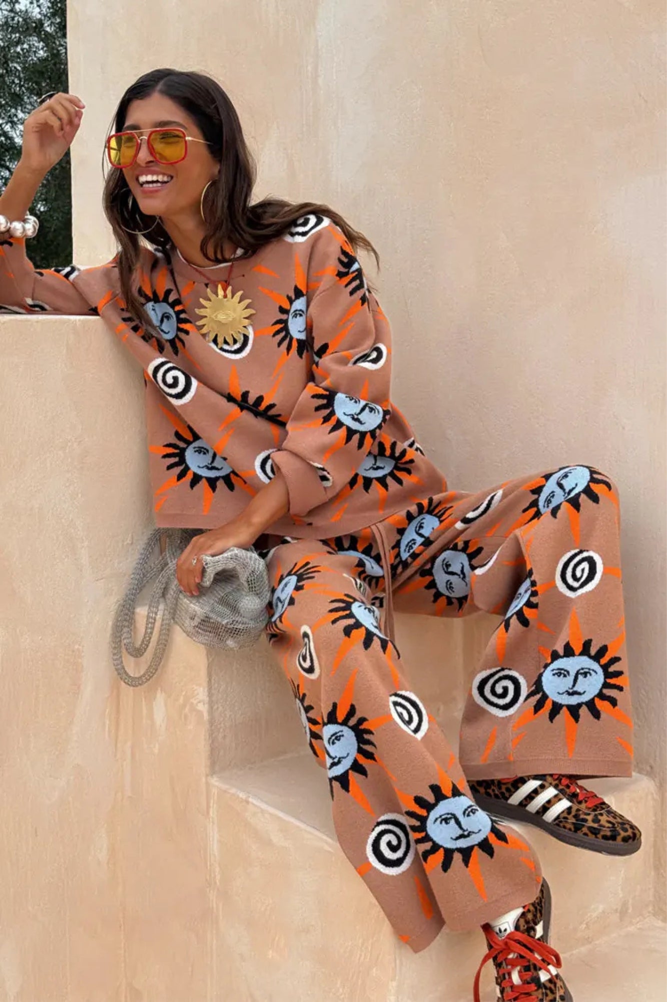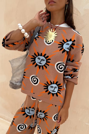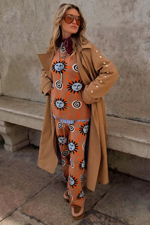 - Our best selling soft stretch knit in our new tan sun print