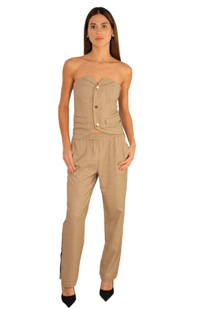 - The Carine is a fitted bustier with statement gold buttons down the middle. It is classy, sexy, and timeless.