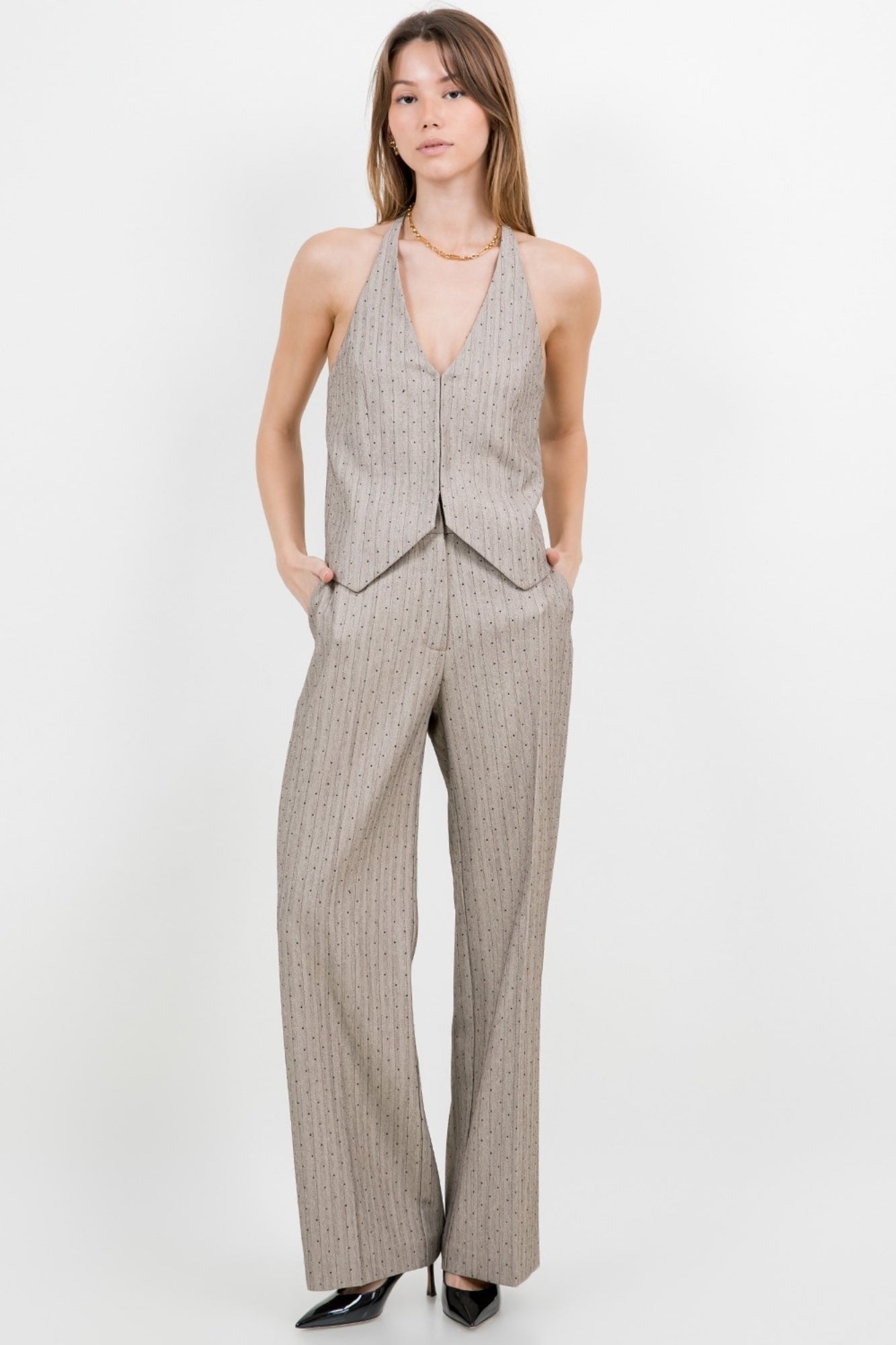 RHINESTONE EMBOSSED PINSTRIPE TAUPE SET