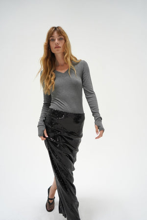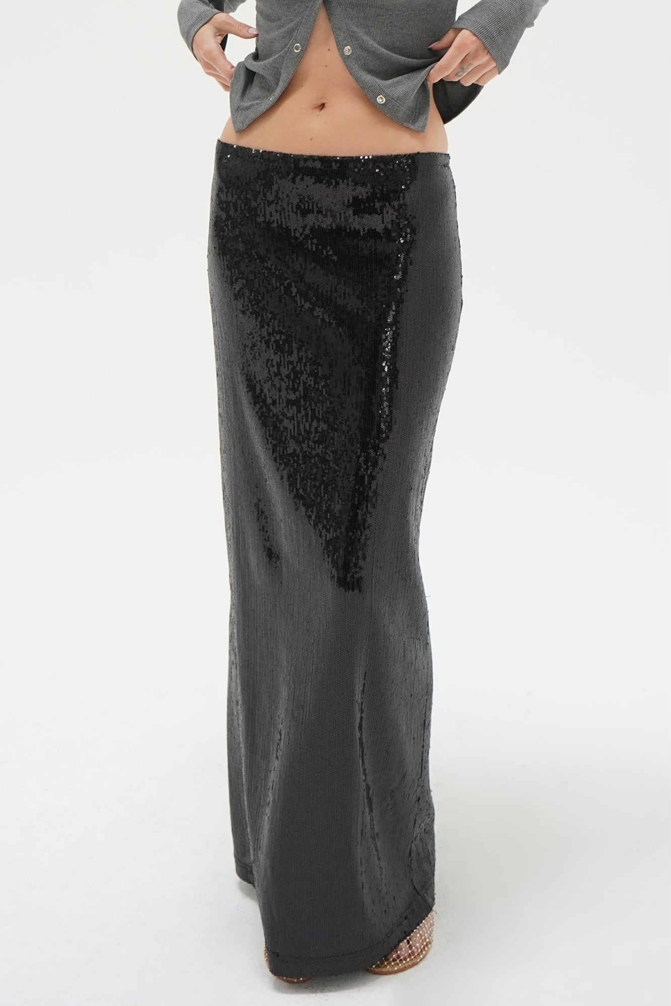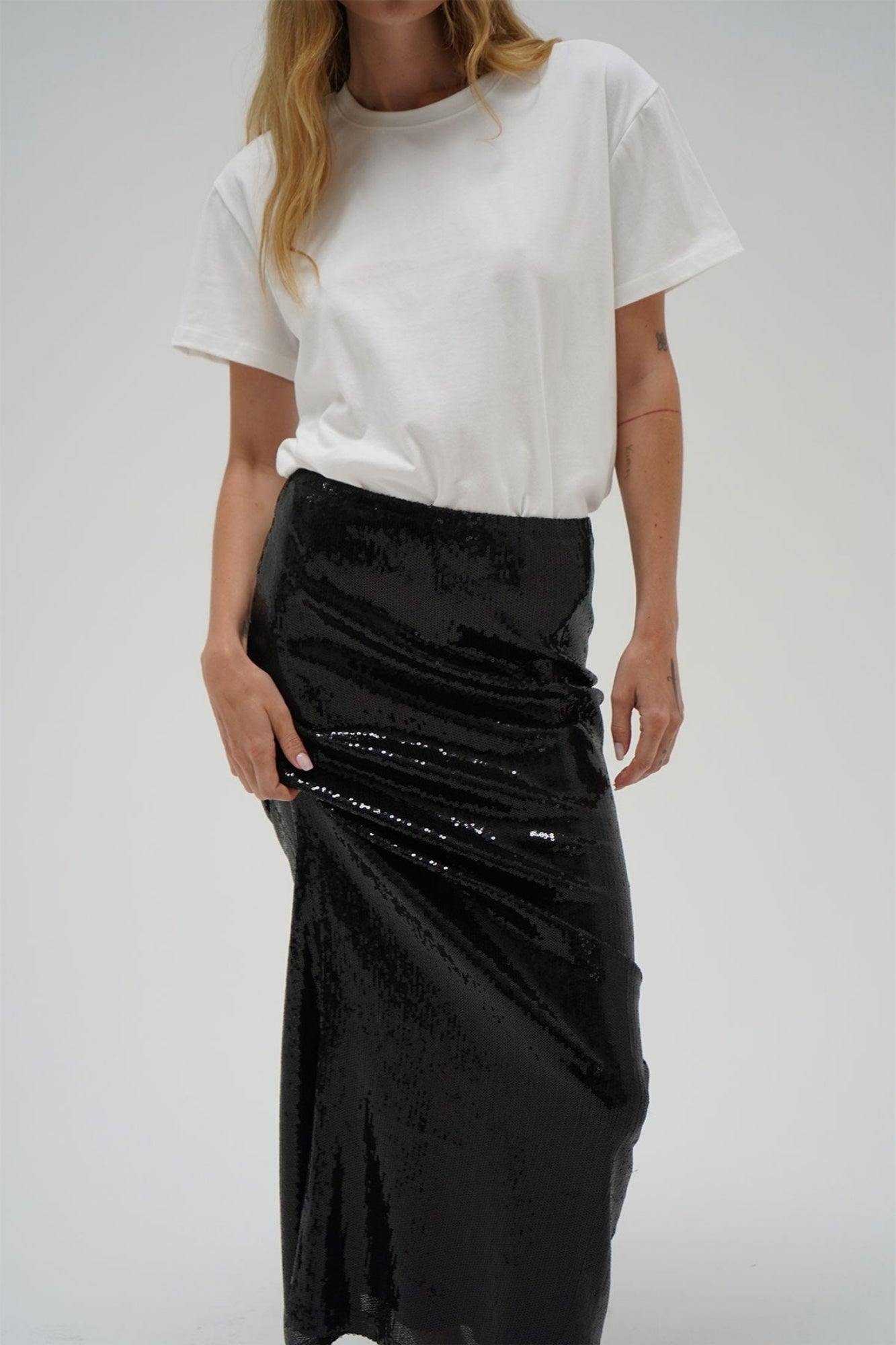 ELETTRA SEQUIN COLUMN BLACK SKIRT