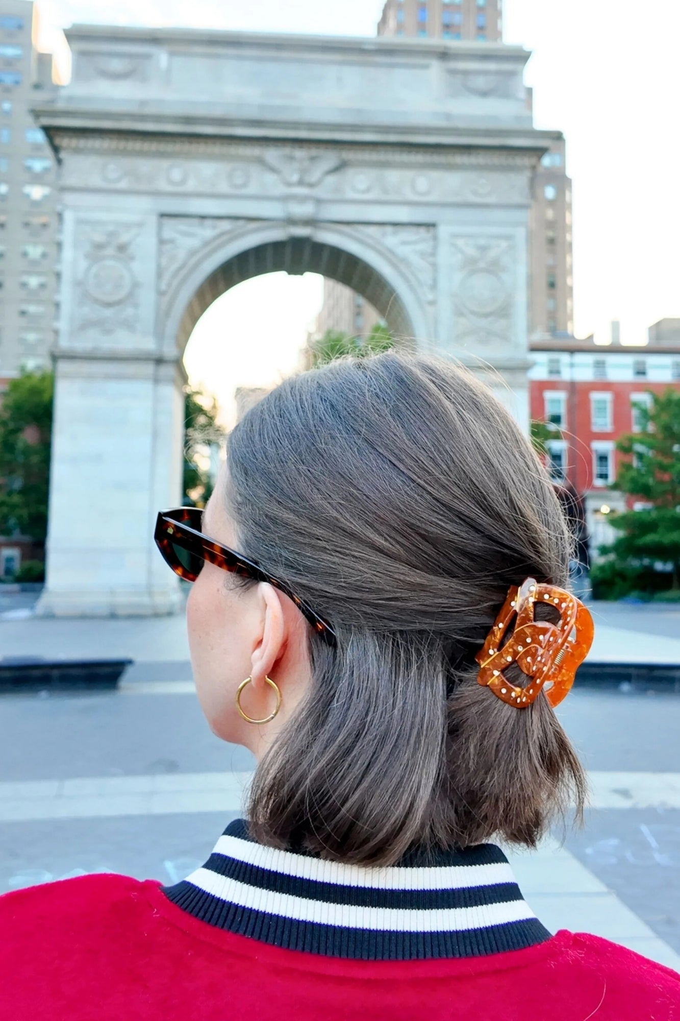 - Handmade with our signature biodegradable acetate made from recycled wood pulp, it effortlessly holds hair for a secure all-day style.