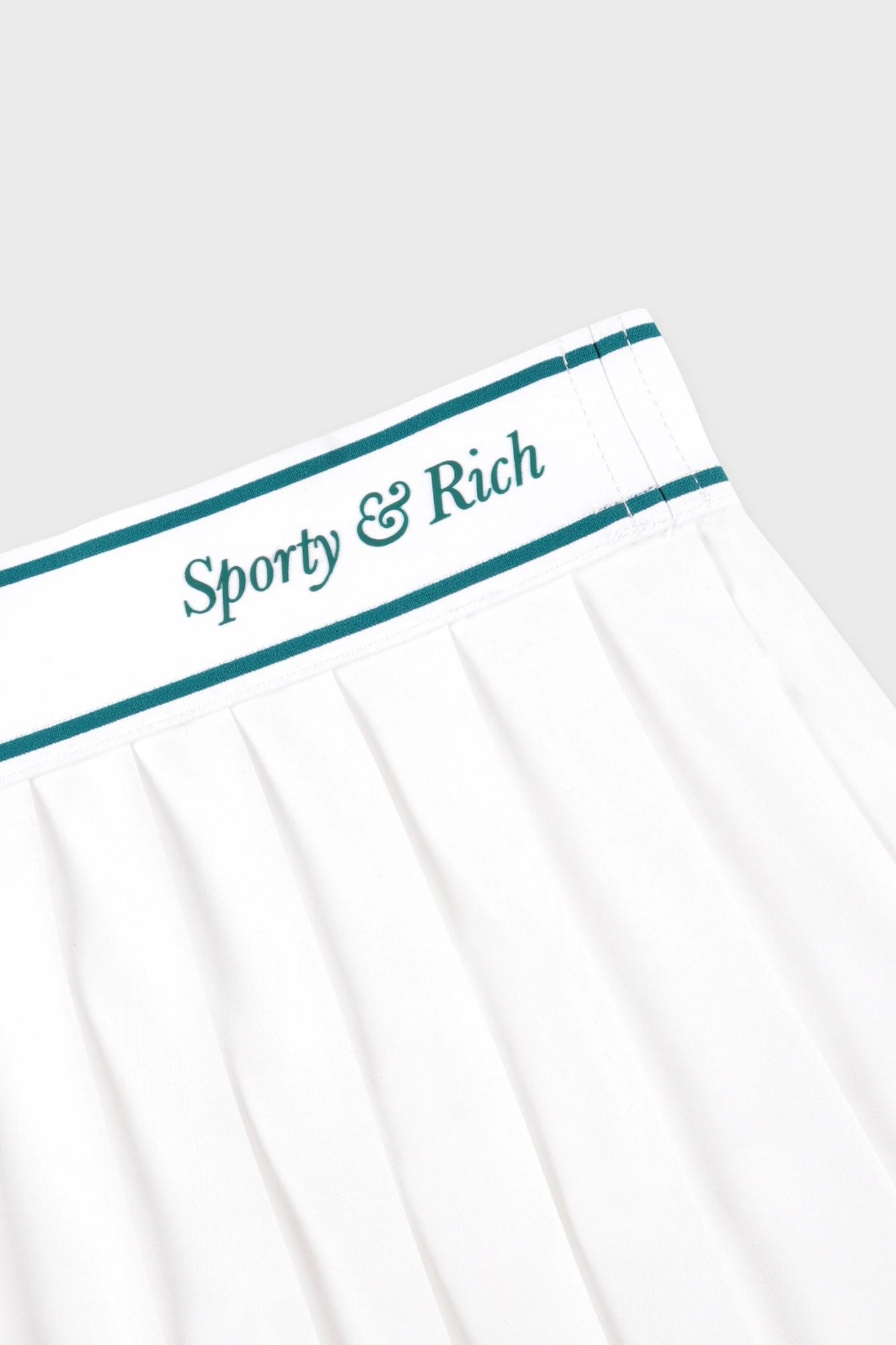 ITALIC LOGO PLEATED WHITE ALPINE SKIRT