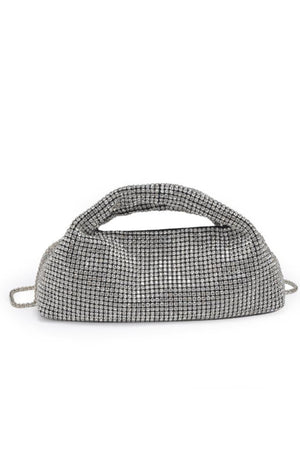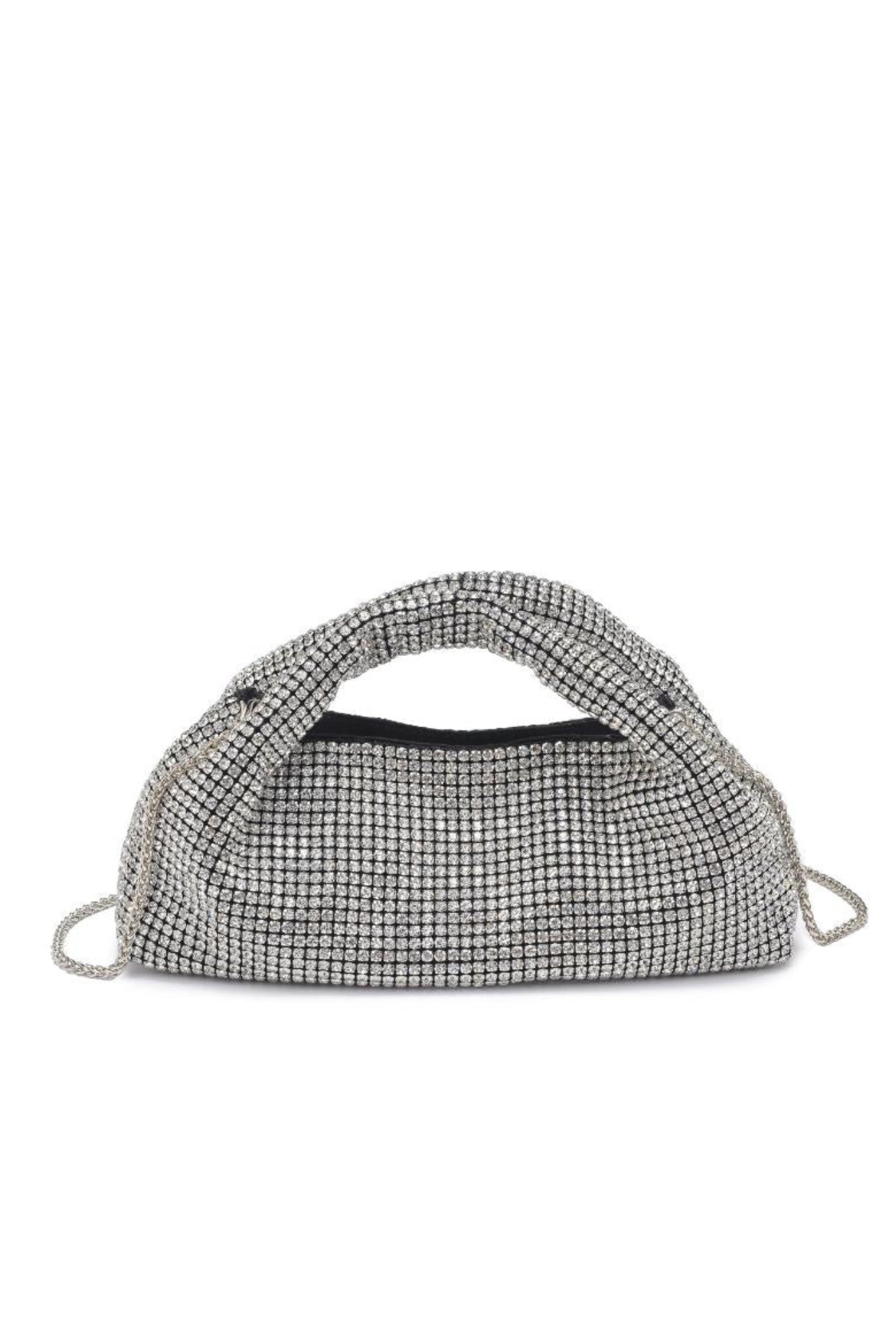 - Exterior Details: Top Handle, Rhinestones All-over, Silver Hardware, Detachable Chain Strap
