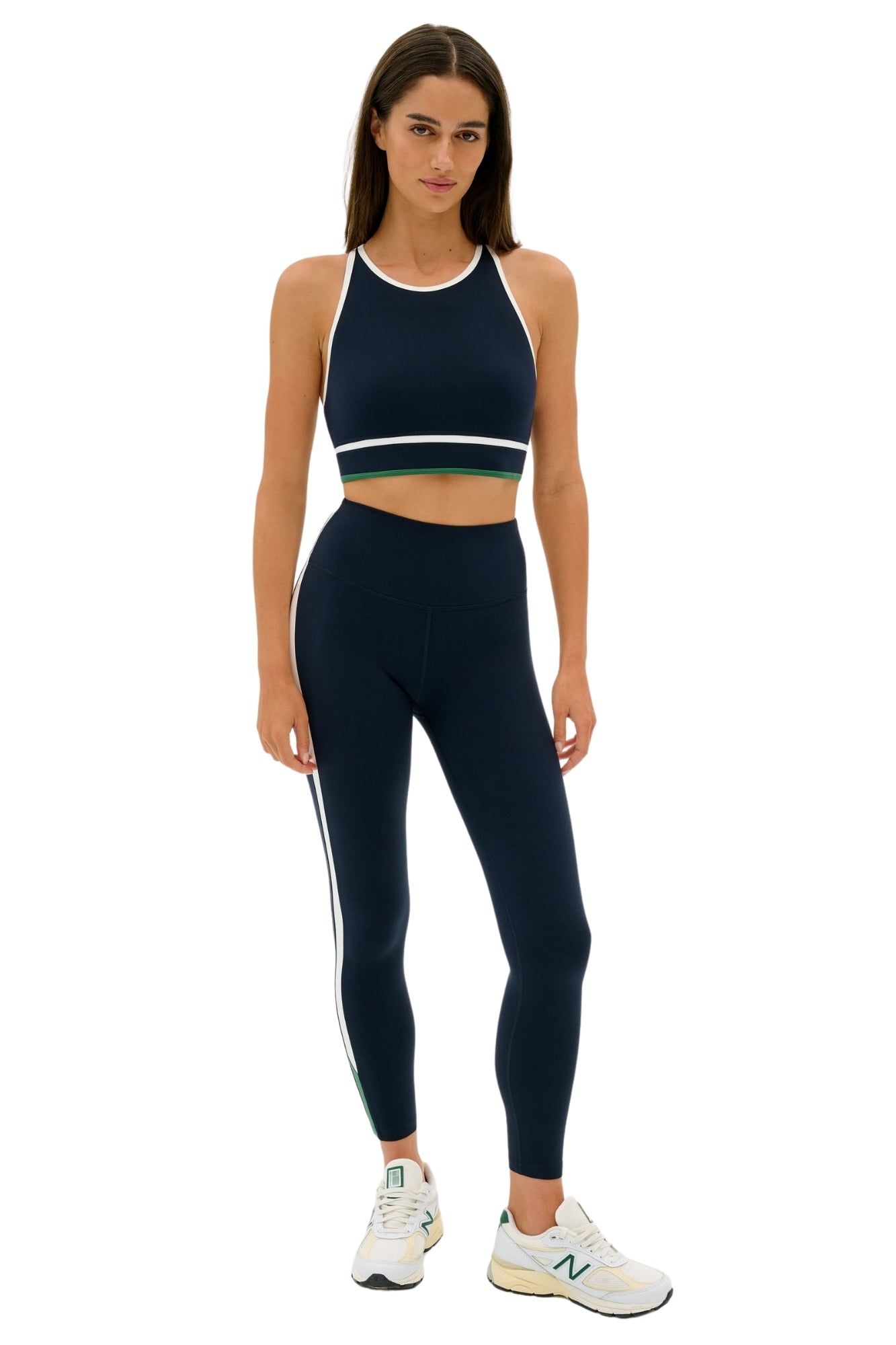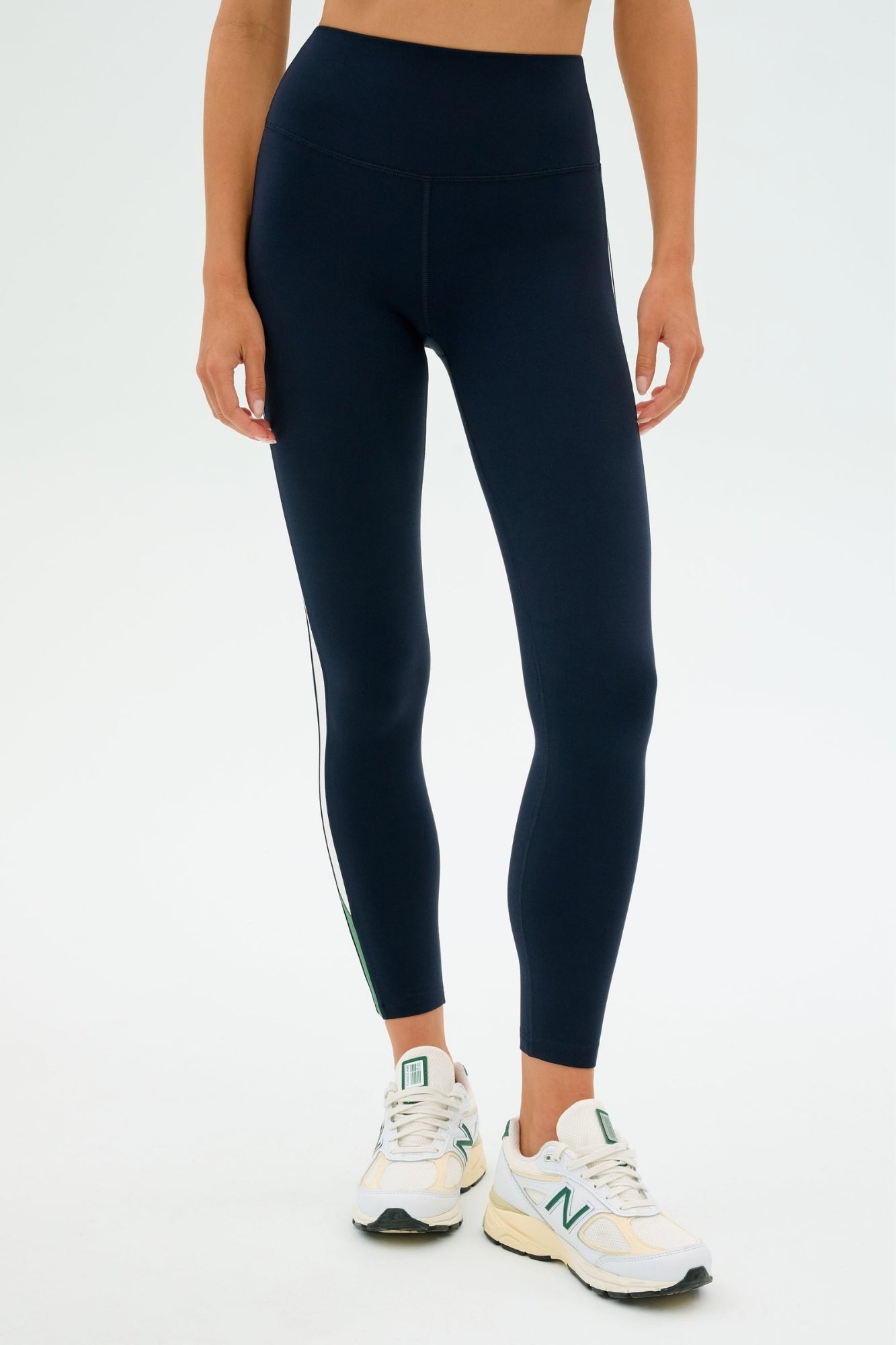 - Our classic high waist Airweight legging updated with a contrast colored stripe detail.