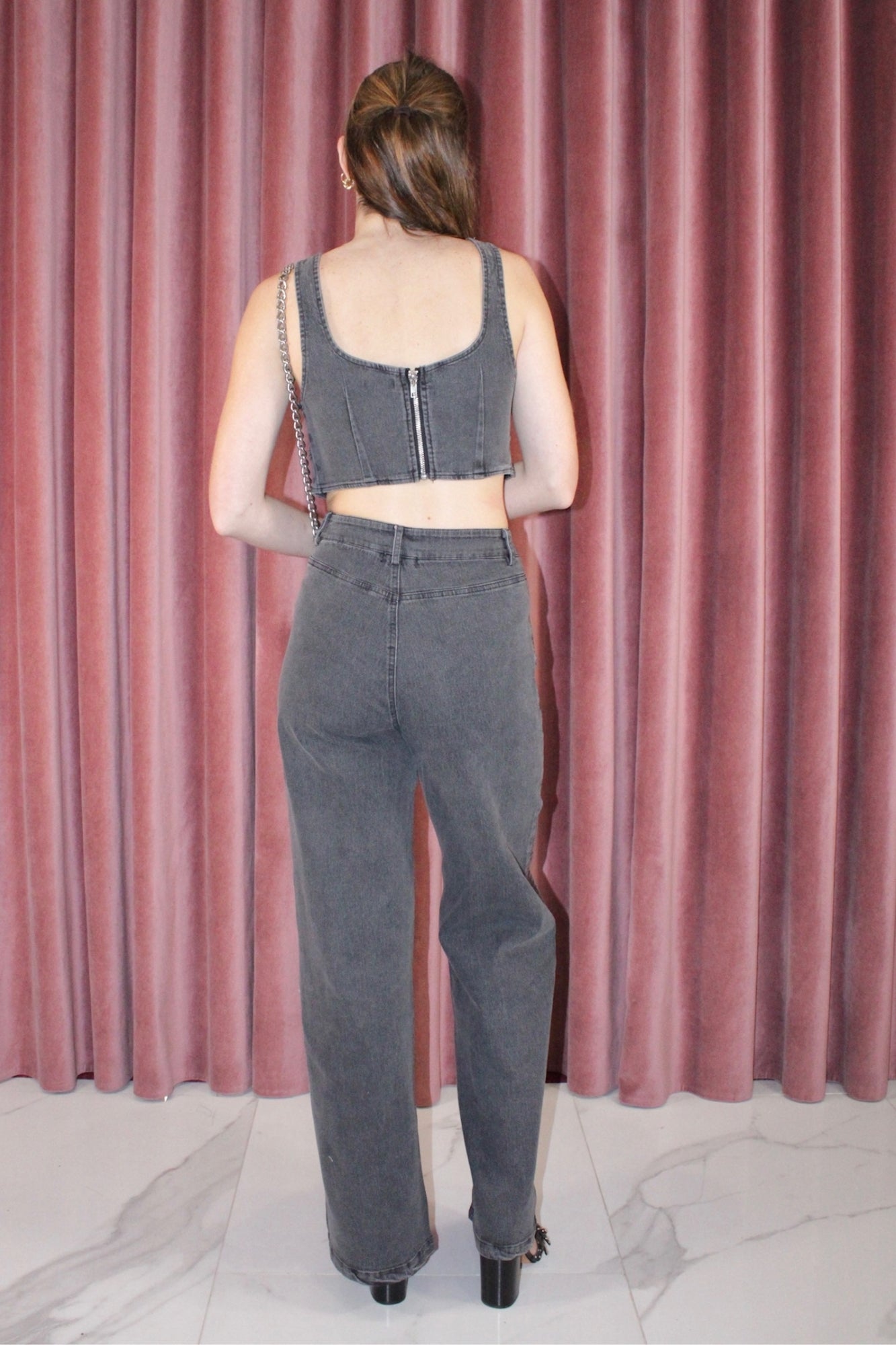 MARIELLE CLEAR SEQUIN DENIM CROP TOP & PANTS SET