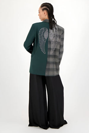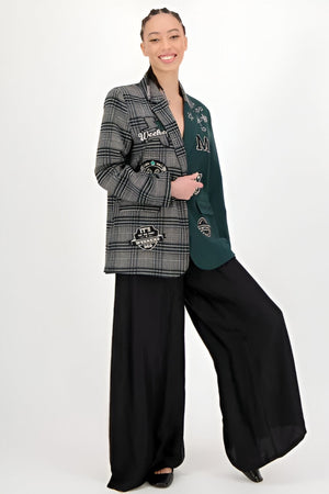 - Vintage looking blazer style jacket with collar, lapel and two pocket flaps.