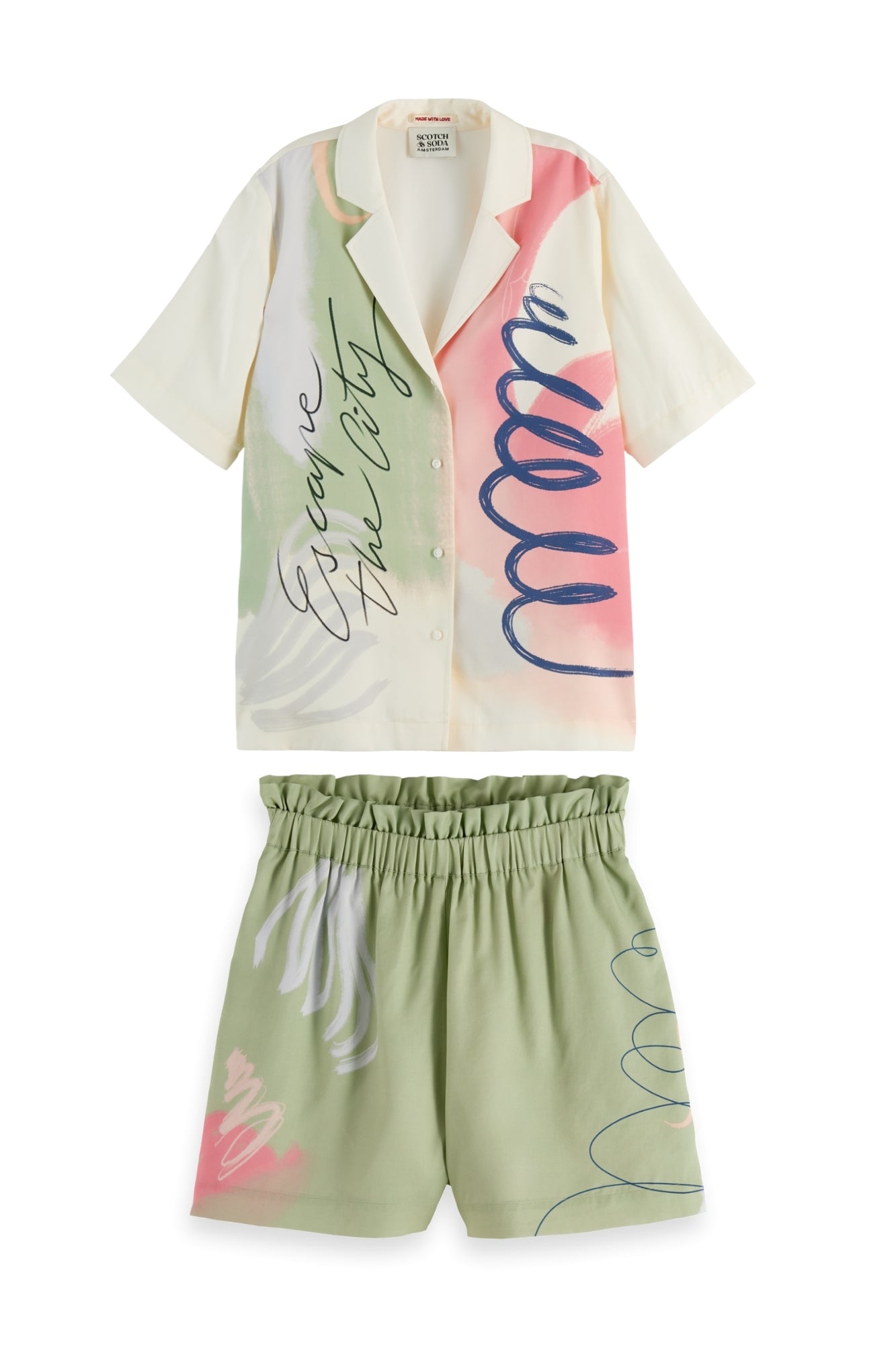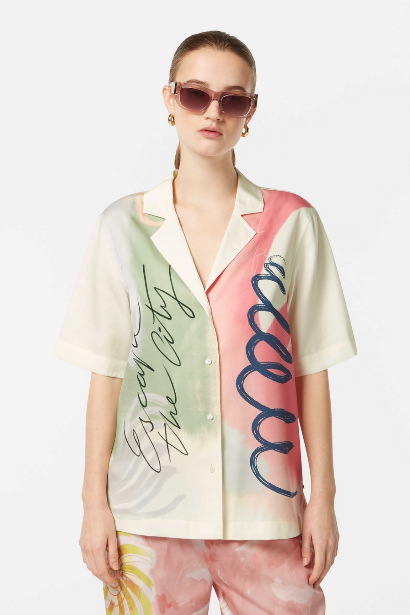- A lightweight short-sleeve shirt featuring a bold placed print, perfect for adding a statement touch to any warm-weather look.