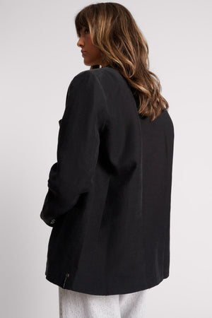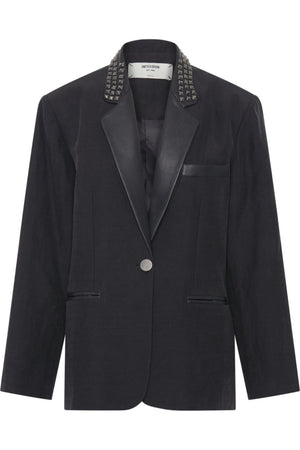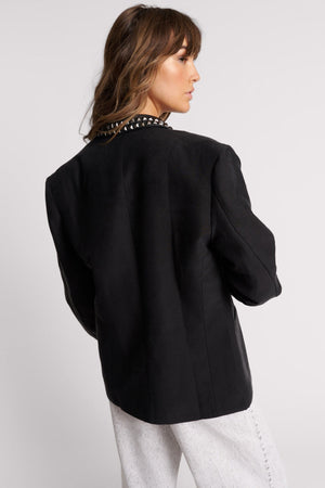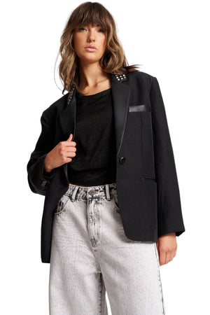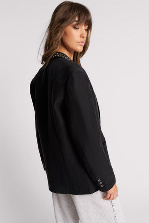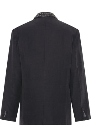 PUNK STUDDED LINEN BLACK BLAZER