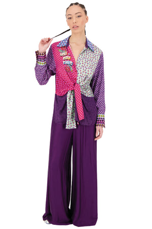 - Colorful long sleeve shirt in our Twisted Love print that ties at the waist over the front of the top.