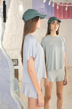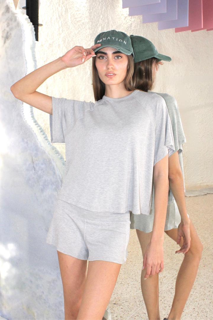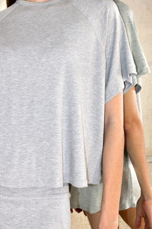 RIB SHORT SLEEVE HEATHER GREY LOOSE SET