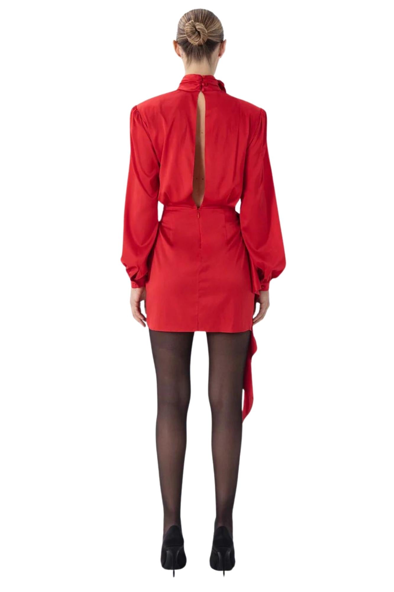 - The Rocky dress is a crimson stretch charmeuse mini dress.