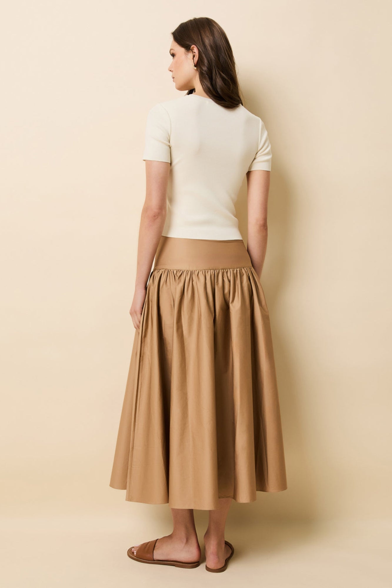 - This midi skirt is designed with a clean, wide waistband and structured facing for a polished, flattering fit.