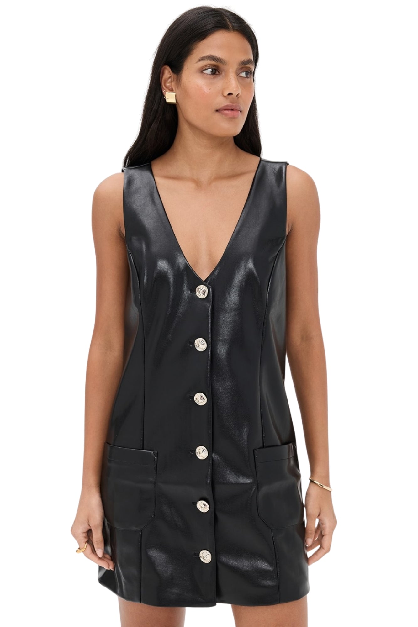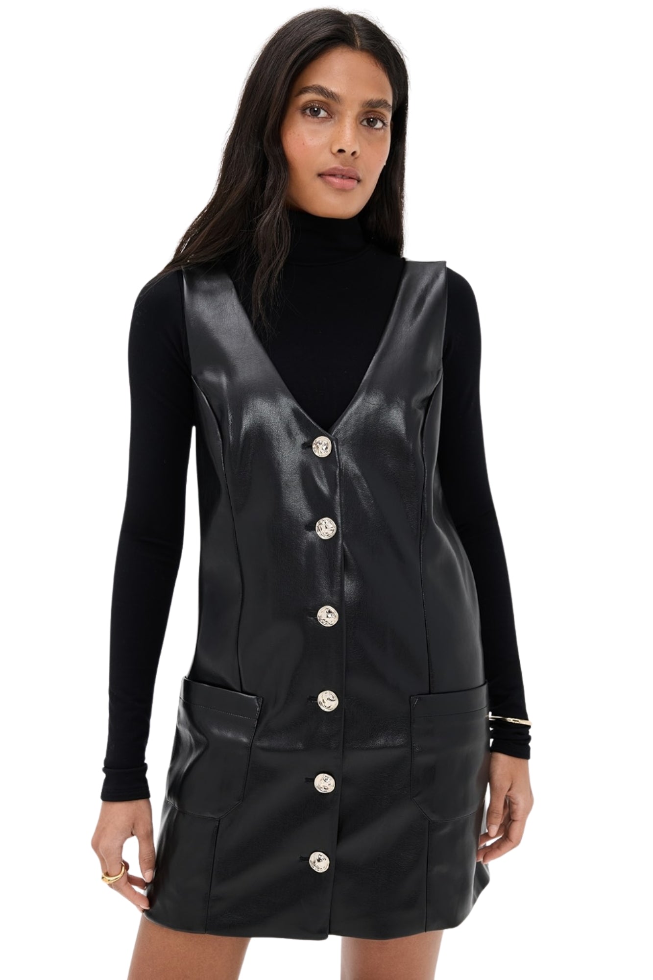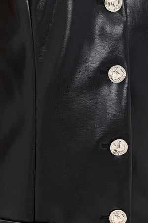 - Fabric: Mid-weight, non-stretch faux leather