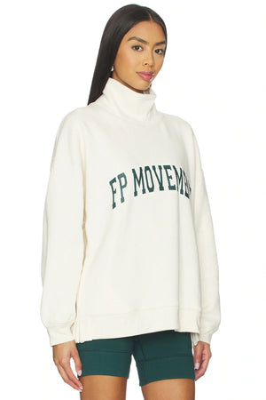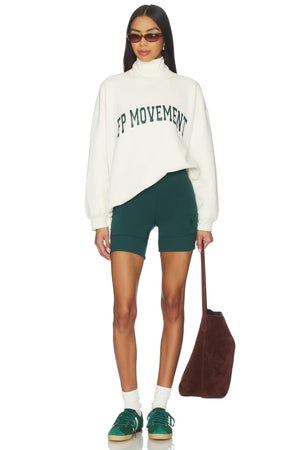 - Pullover; Funnel neckline, dropped shoulder seams, collegiate FP Movement logo at the front; Shorts: Pull-on design, ribbed trimming, mid-thigh length, stretch fi