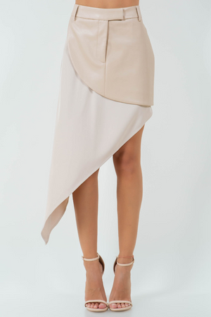 WOVEN LEATHER COMBO ASYMMETRICAL SKIRT