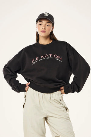 • The Volume Sweat in Washed Licorice is crafted from a luxurious soft brushed cotton blend, this oversized garment dyed sweat is a P.E Nation must have.