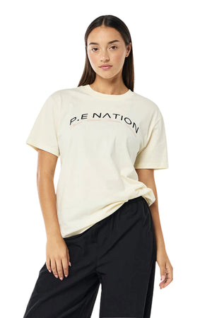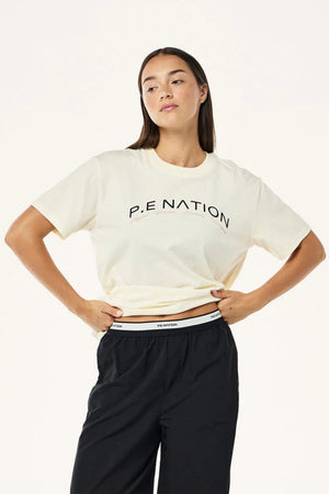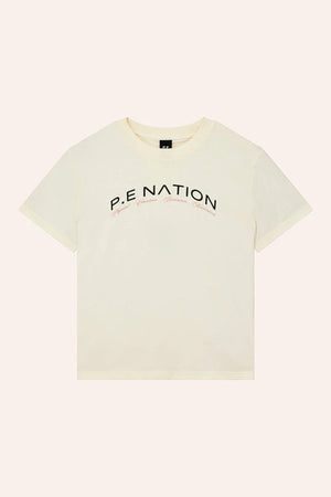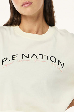 - Featuring a P.E Nation Seasonal Graphic, this relaxed fit, ribbed crew neck tee is the ultimate must-have.