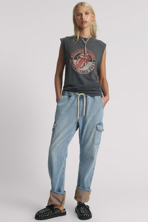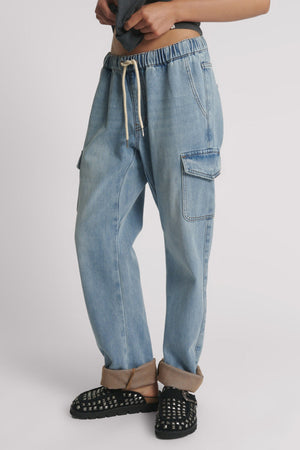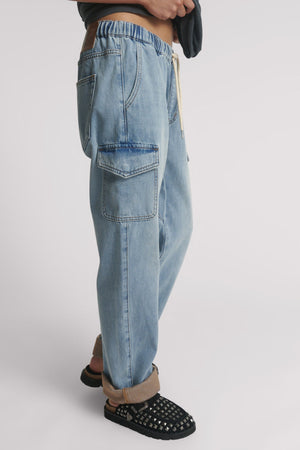 BLUE TOBACCO CARGO SHABBIES DRAWSTRING BOYFRIEND JEANS