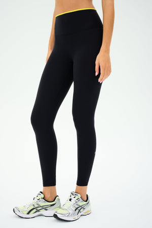 Pops of color along the waist deliver a flattering look while you move. Gently compressive Rigor fabric and high waist for support and shaping.