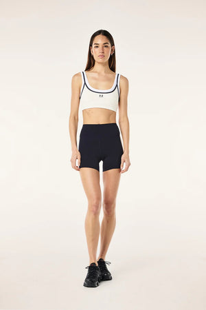 The Freeplay 5" Bike Short in Dark Sapphire & Whisper White is made from our new Studio Soft fabrication, a lightly peached fabric with a matte finish. This active high rise bike short features a folded waistband and a logo on the centre back waist. Perfect for pilates or yoga, style this bike short with the Forward Crop for a matching active look.