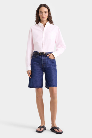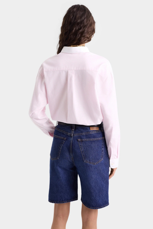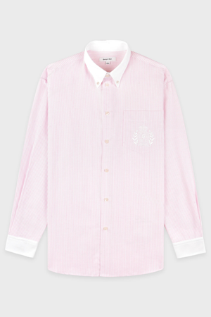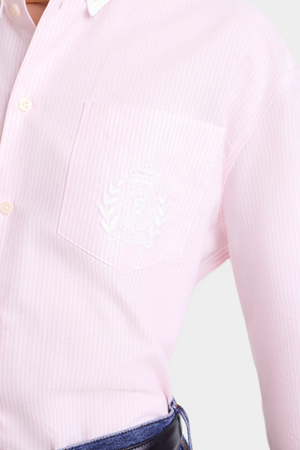 H&W CREST OVERSIZED OXFORD PINK WHITE STRIPE SHIRT