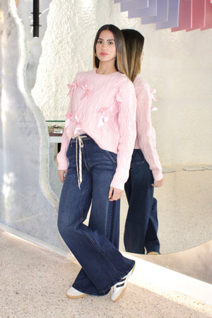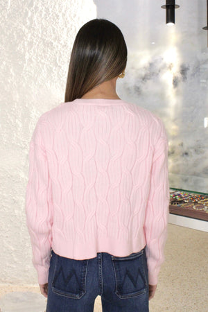 MONOCHROMATIC BOW CABLE BABY PINK KNIT SWEATER