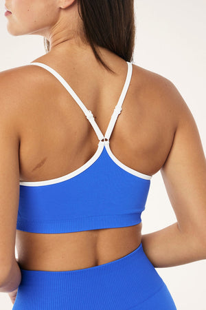 - The Release Seamless Sports Bra in Royal Blye offers light compression and is perfectly designed for low intensity movement.