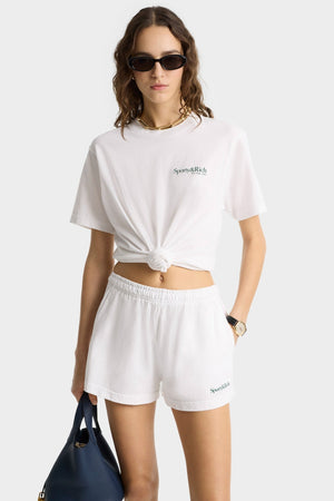 - These super-short, heavy jersey shorts feature an elastic waistband, two side pockets and one back pocket.