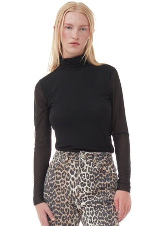 SOLID MESH BLACK LONG SLEEVE ROLLNECK
