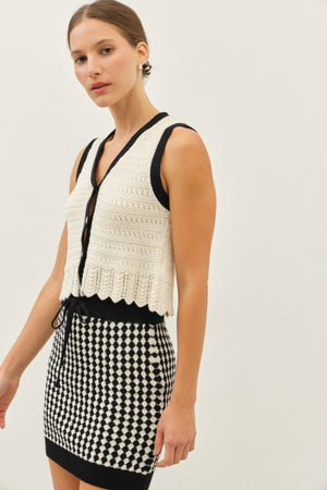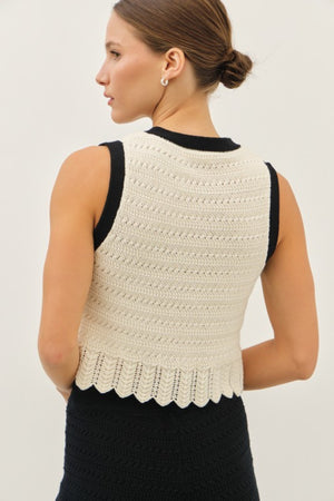 V-NECK BUTTON DOWN CROCHET SWEATER TOP