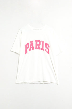WHITE PARIS RELAXED T-SHIRT WITH PINK LETTERS