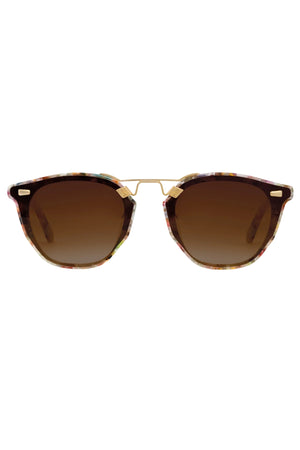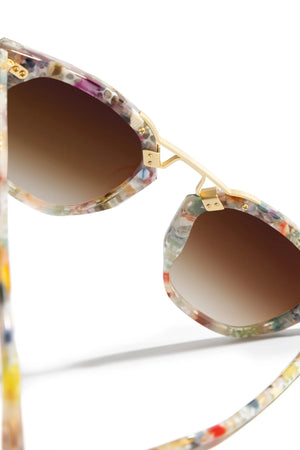 • This handcrafted frame is a combination of glossy acetate and glossy 18K gold-plated stainless steel hardware
