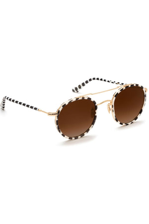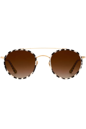 • This handcrafted frame is a combination of matte acetate and glossy 24K gold-plated titanium hardware