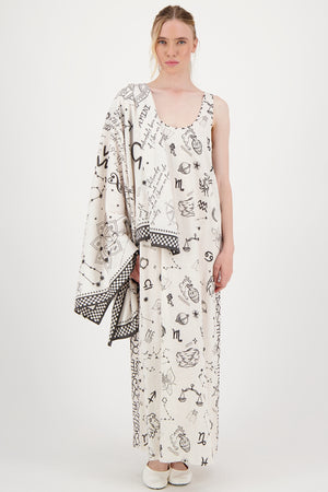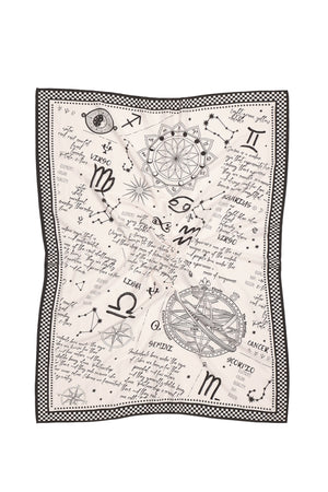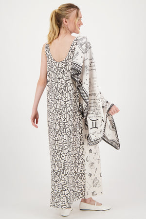 - Linen and viscose black and white Zodiak scarf featuring the signs of the zodiac, drawings and descriptions.