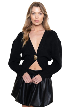 CHIC CLASSY ELEVATED BASIC GOLD BLACK CARDIGAN